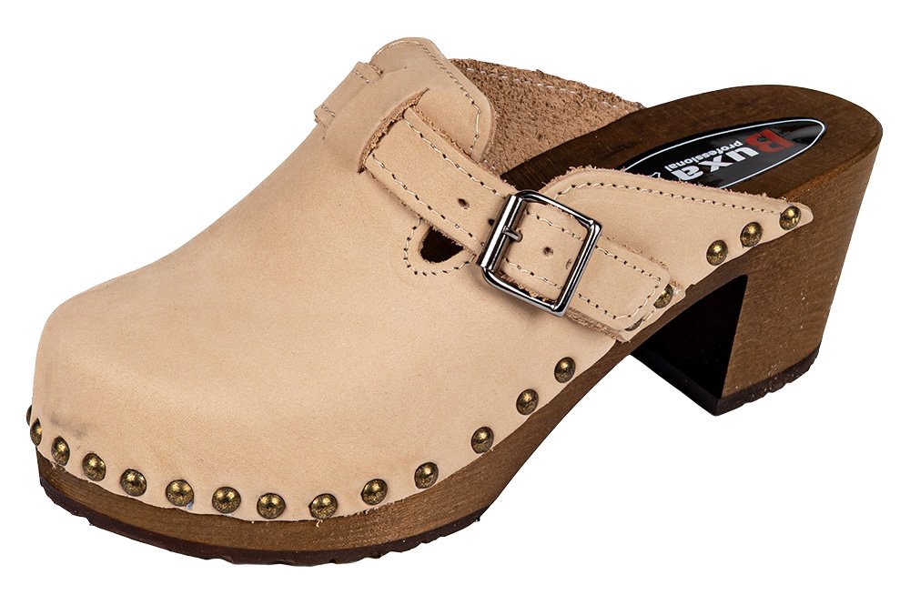 Dřeváky jsou vyrobeny z vysoce kvalitní přírodní kůže pokryté speciální fólií, která zajišťuje snadnou údržbu, trvanlivost a volnou cirkulaci vzduchu. Podrážka je vyrobena z lipového dřeva, která má dobré vlastnosti udržovat anatomický tvar a umožňuje mnoho hodin aktivity bez pocitu unavených nohou. S regulačním páskem!