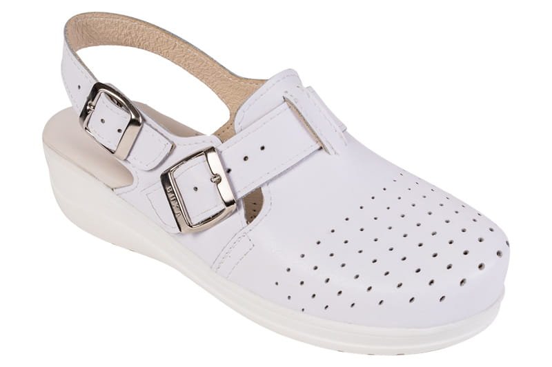 Dámské celokožené zdravotní pantofle s amortizační vložkou v patní části pro tlumení nárazů při chůzi. Jedinečná amortizační vložka umístěná v patní částí podešvi tlumí bolesti páteře a kloubů a zvyšuje komfort chůze. Tento model je vybaven měkkou anatomicky tvarovanou stélkou podporující příčnou i podélnou klenbu. Vyrobeno z nejkvalitnějších hlazených usní. Vytvořené po dlouholeté zkušenosti pro pracující profesionály. Odolné, bezpečné a pohodlné pantofle, které splňují požadavky evropských norem pro profesionální boty a ochranu. Jsou určeny jako zdravotní, pracovní, domácí i vycházková letní obuv. Vhodné pro celodenní nošení. Výhodou obuvi je také to, že nedeformuje nožní klenbu a anatomický tvar nohy zustává zachován. Mají také dlouhou životnost a nízké pořizovací náklady. Vhodné jsou i pro alergiky. Jsou vyrobeny z přírodních materiálů. Jak zjistíte Vaši velikost: 1. Položte nohu na papírový list a obkreslete tužkou své chodidlo. 2. Změřte vzdálenost mezi nejvzdálenějšími body. 3. K naměřené délce připočtete 3 mm. 4. Určete velikost podle Vámi změřených údajů: Velikost: 35 – 23 cm, 36 – 23,5 cm; 37 – 24,3 cm; 38 – 25 cm; 39 – 25,5 cm; 40 – 26,2 cm; 41 – 26,8 cm; 42 – 27,5 cm Výška: podpatku: 4,5 cm Podešev: 2 cm Šířka obuvi: F-G (možnost regulace) Atest : CLPO – Zdravotní obuv, CE – Prohlášení o shodě, EN-20347 – Pracovní obuv